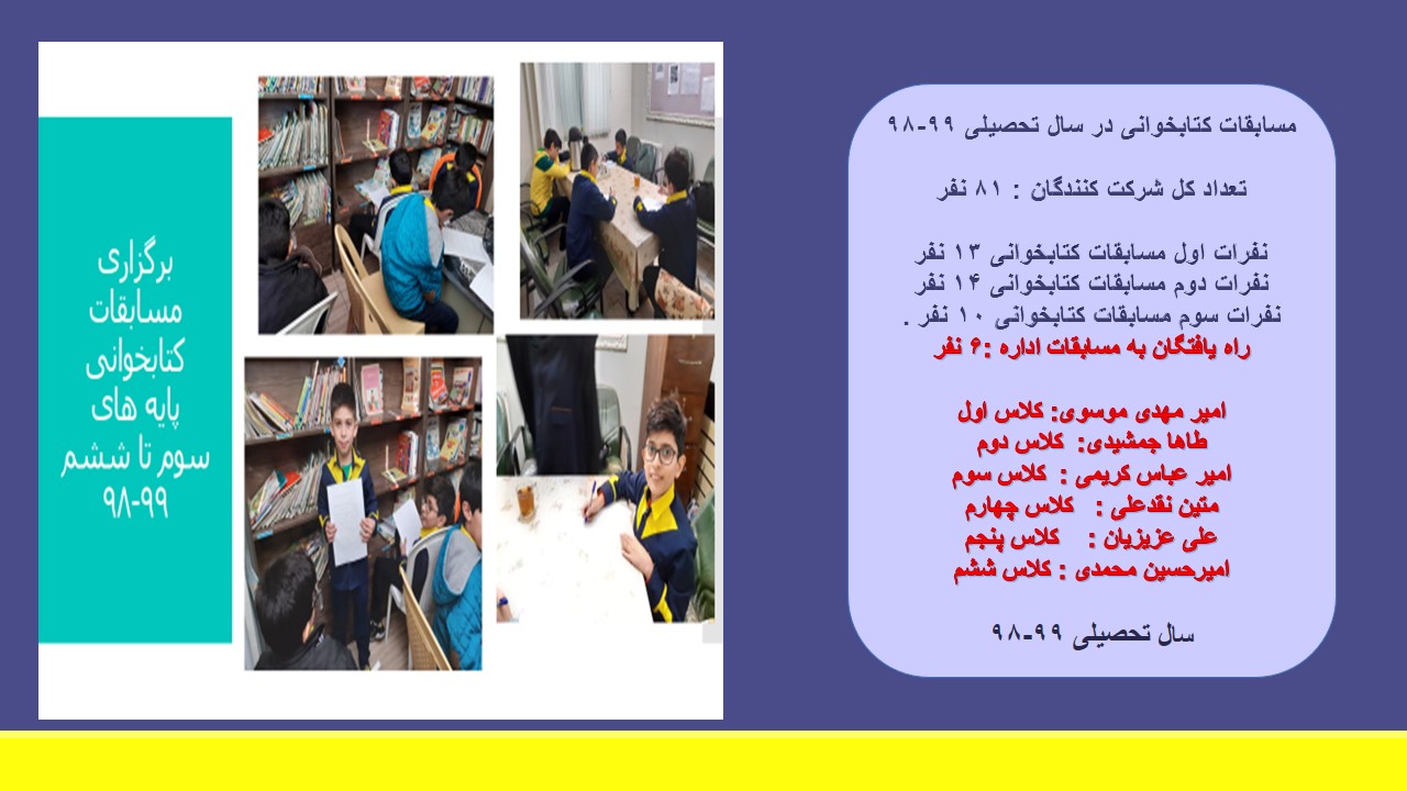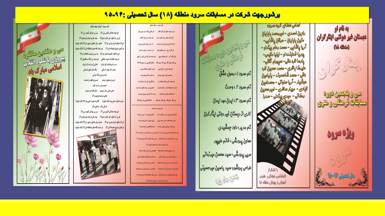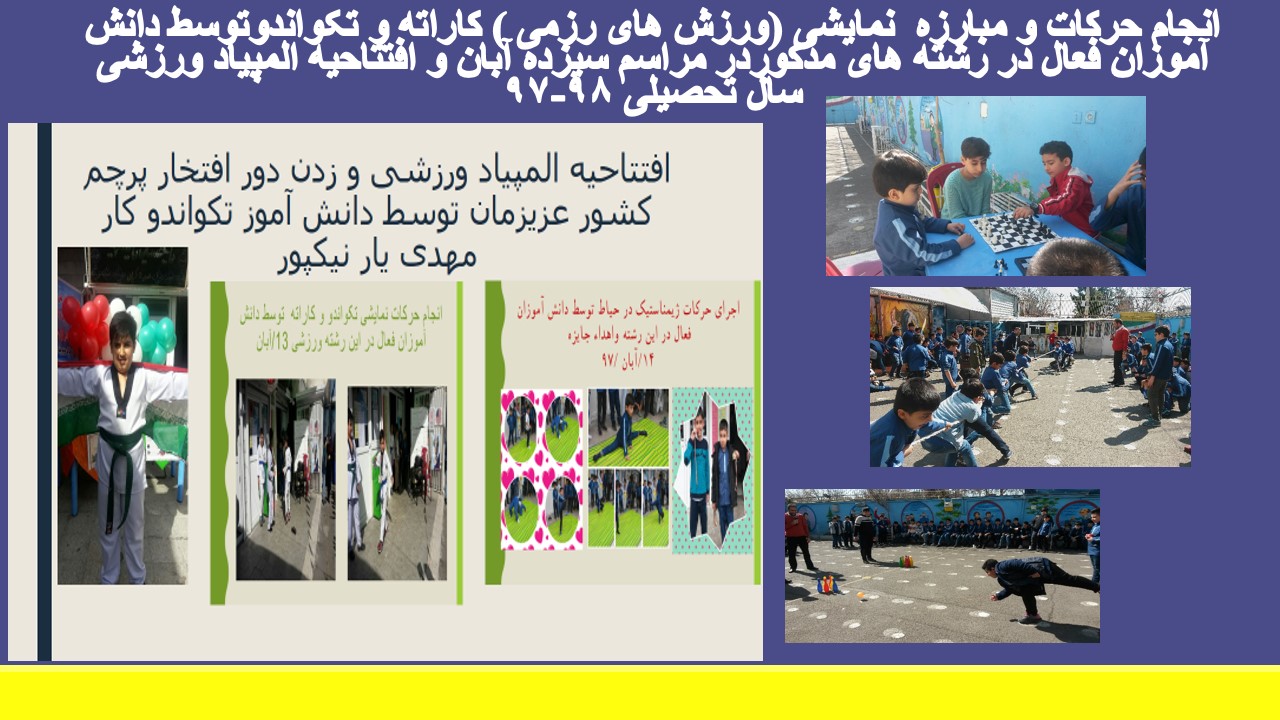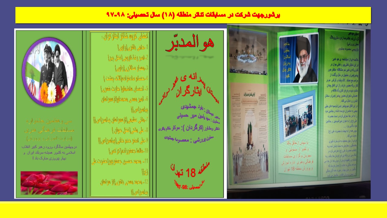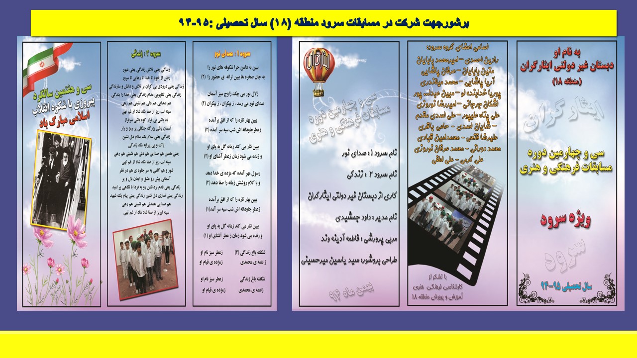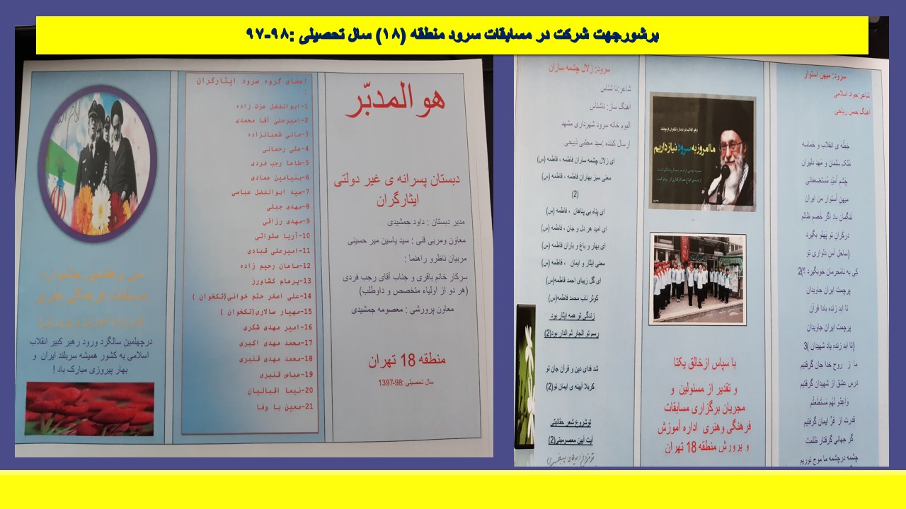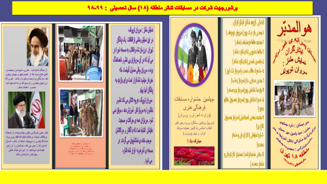 گزارش مصوربخشی از فعالیت های آموزشی وپرورشی سالهای اخیر. لطفا اینجا کلیک کرده و پس از رویت تصاویر روی تصویر هم کلیک کنید تا واضح تر ببینید .