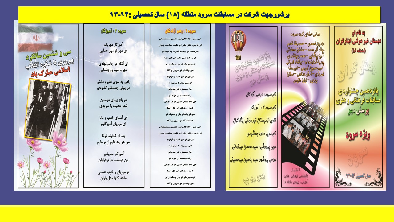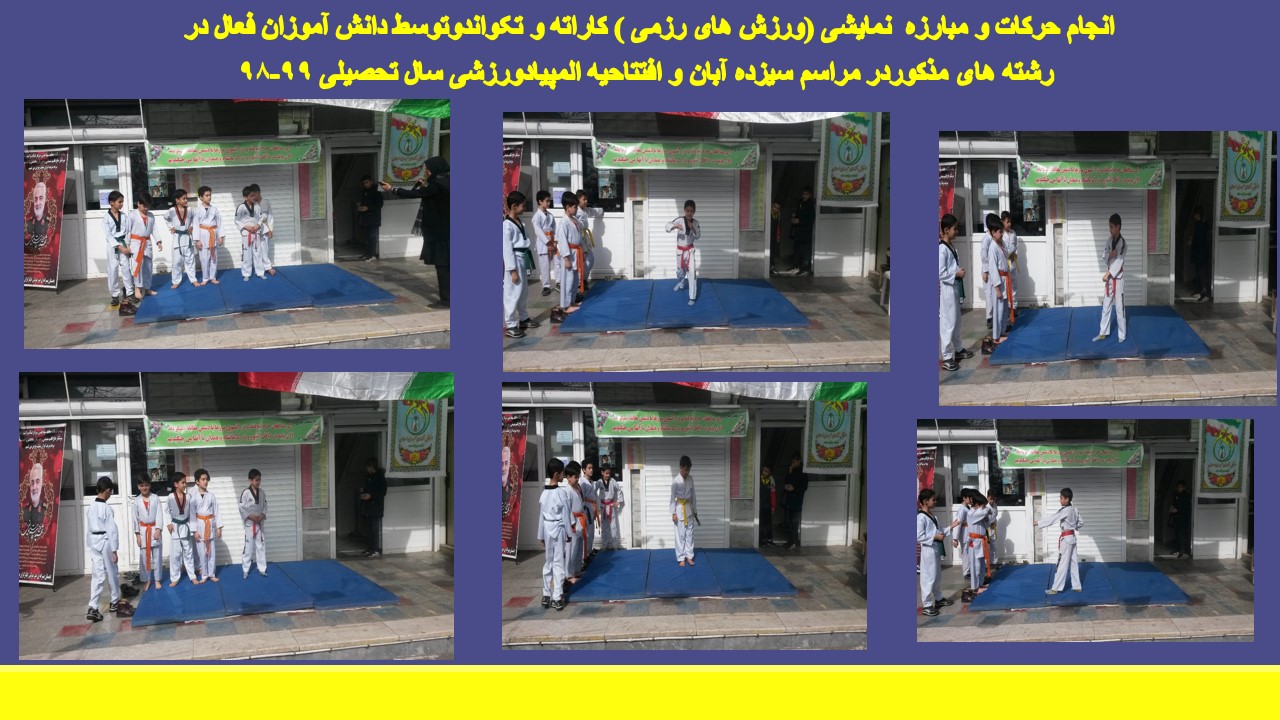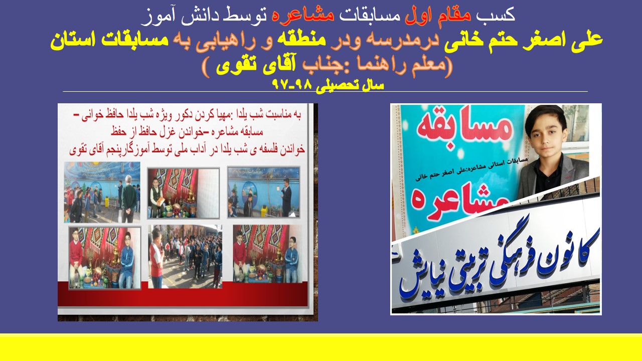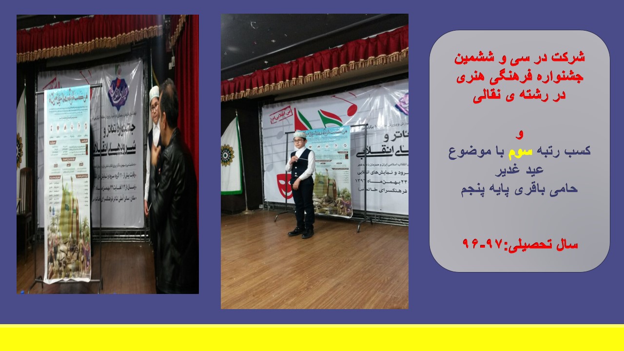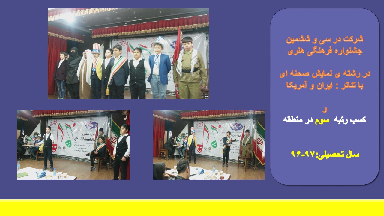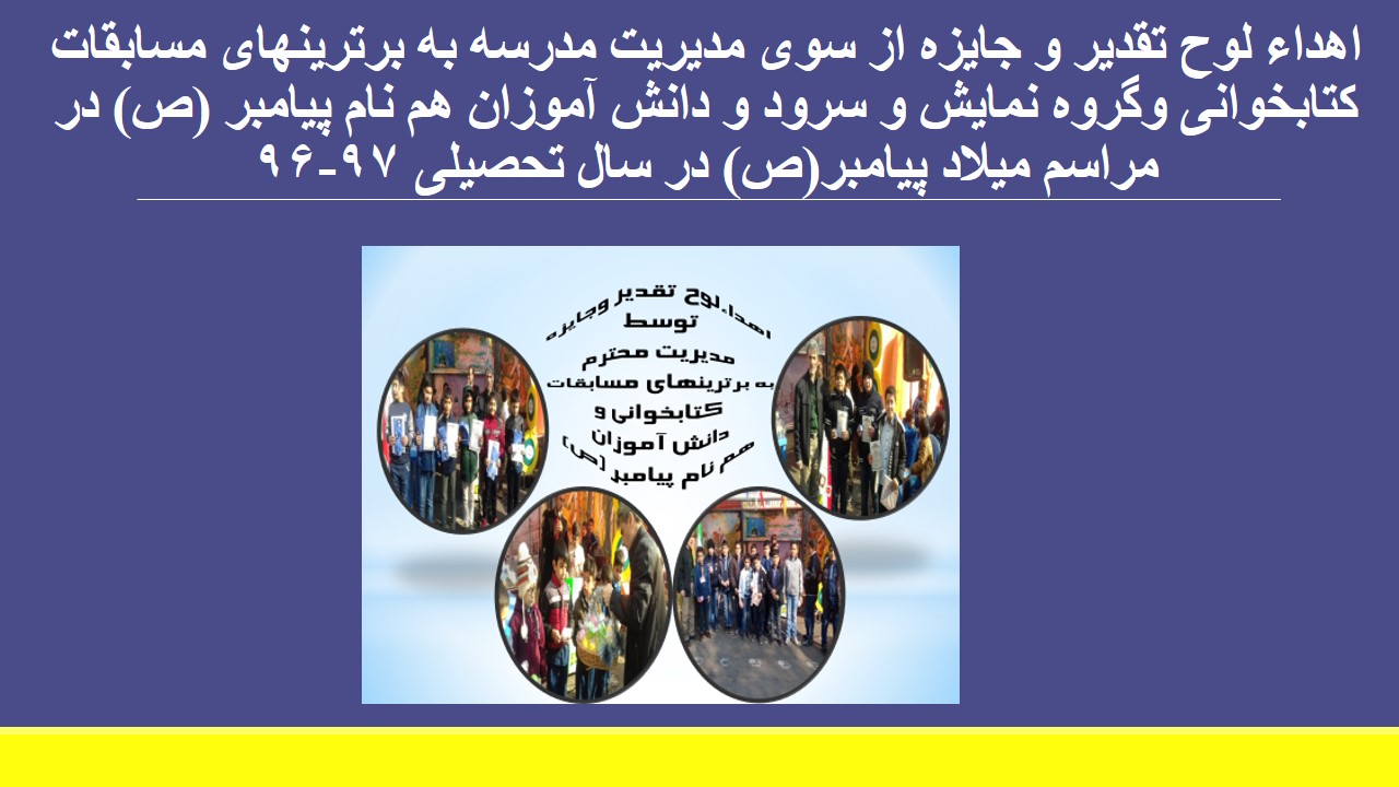گزارش مصوربخشی از فعالیت های آموزشی وپرورشی سالهای اخیر. لطفا اینجا کلیک کرده و پس از رویت تصاویر روی تصویر هم کلیک کنید تا واضح تر ببینید .