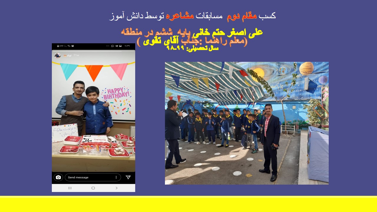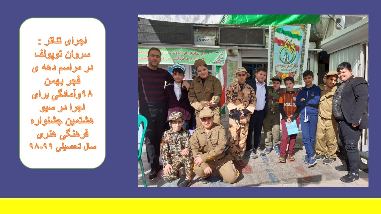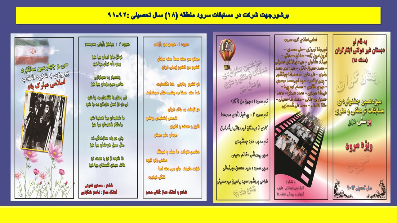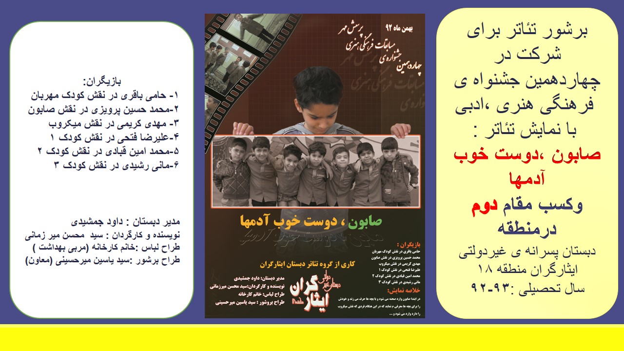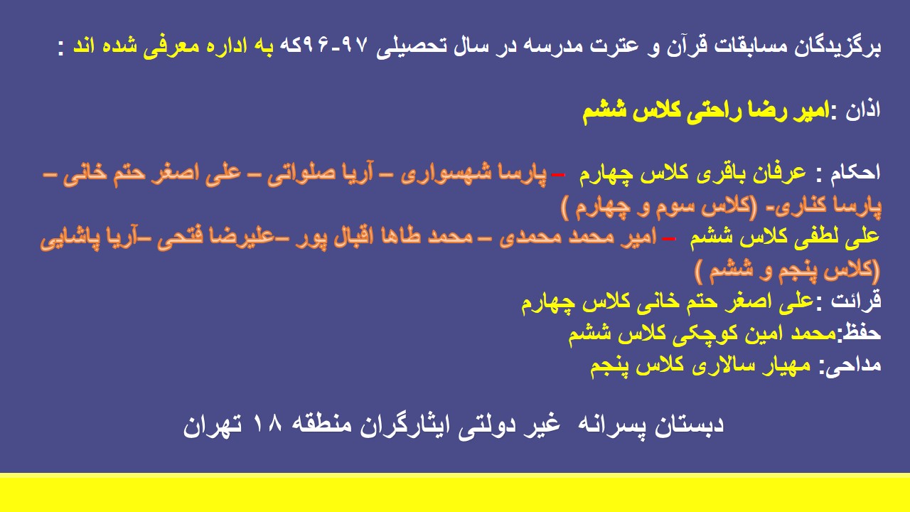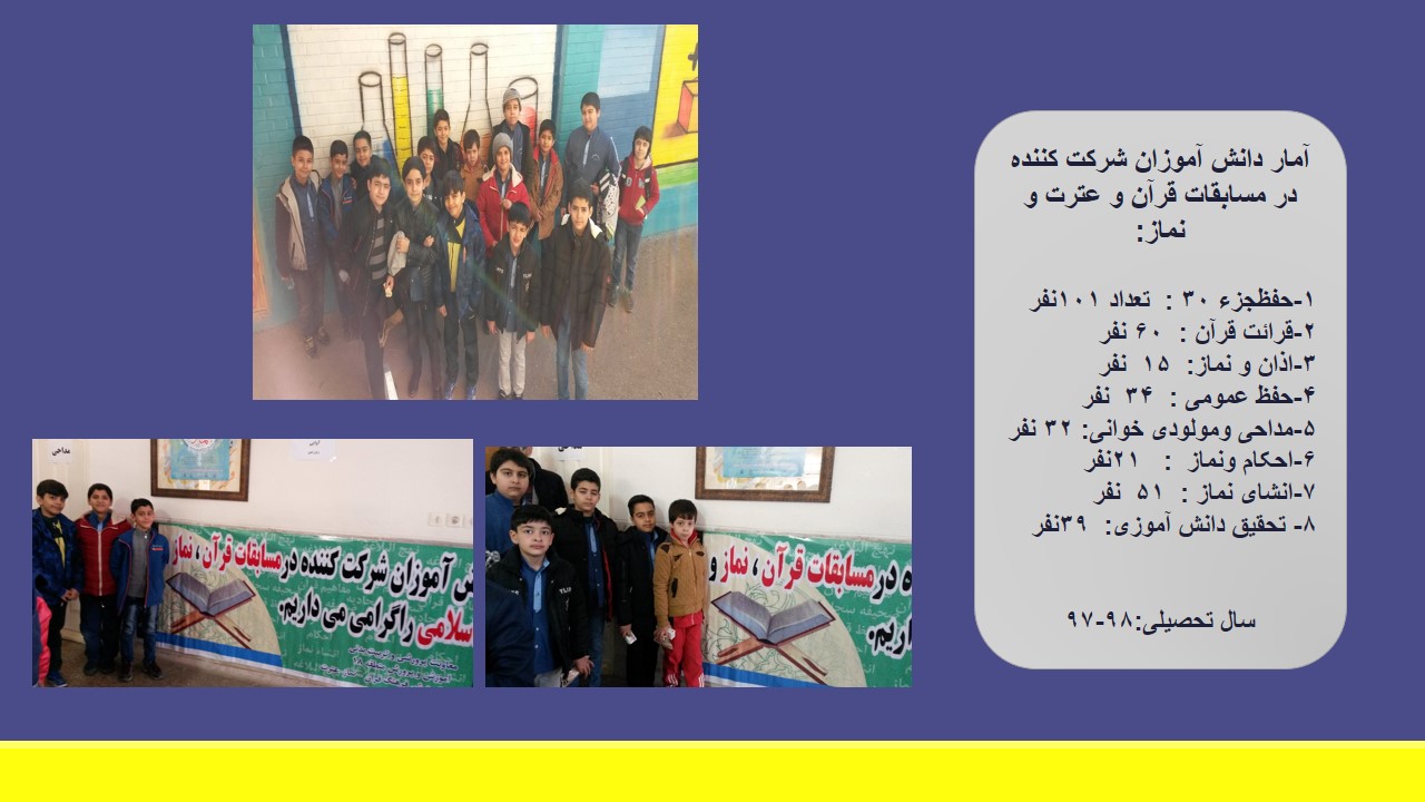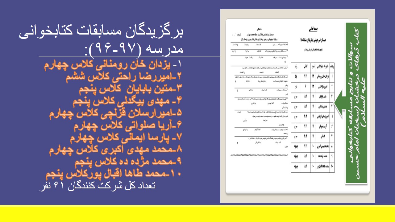 گزارش مصوربخشی از فعالیت های آموزشی وپرورشی سالهای اخیر. لطفا اینجا کلیک کرده و پس از رویت تصاویر روی تصویر هم کلیک کنید تا واضح تر ببینید .